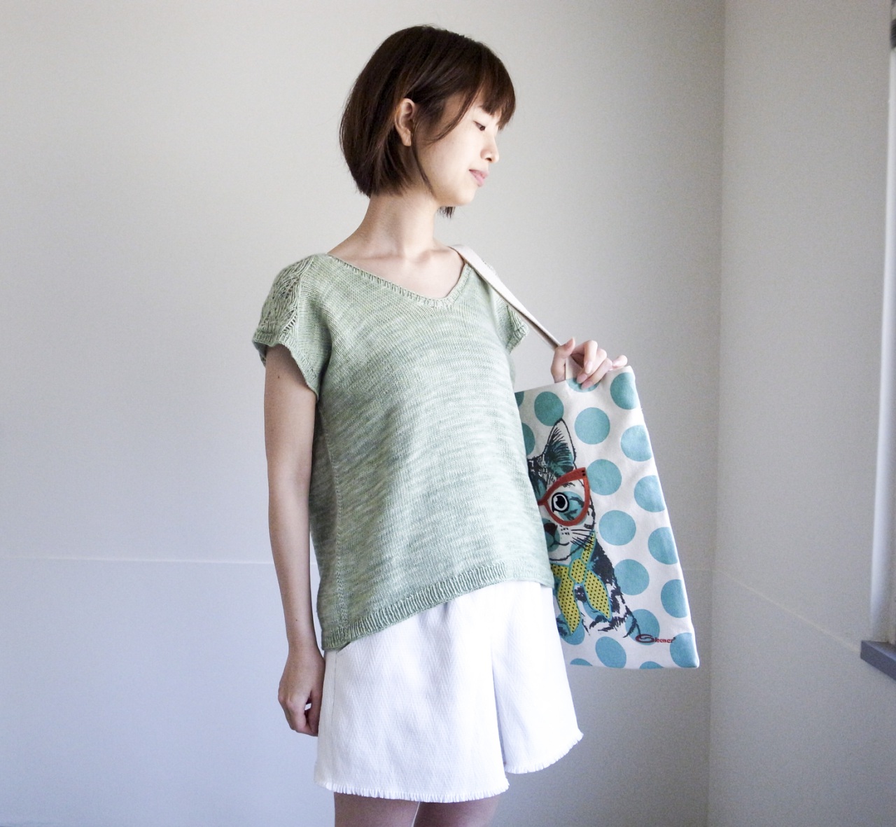 前にもお伝えしましたが、さっぱりタイプのウールなので夏までいけそう。今日みたいな夏日でも大丈夫でした。広い襟ぐりと袖の模様、裾広がりのかたちが風を通して涼しいです。