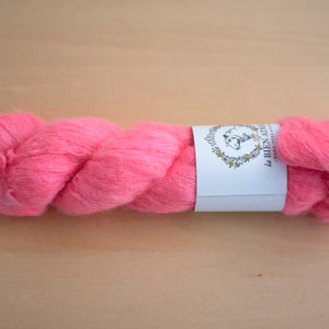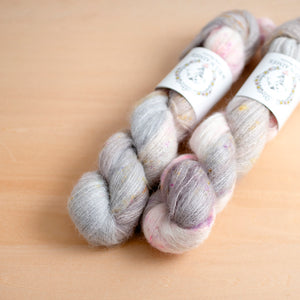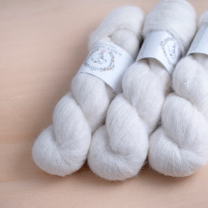 Kumoは、Aiméeが日本滞在中にインスピレーションを受けて作られた糸。「雲」という名前の通り、ふわふわで繊細なアルパカとシルクのモヘア糸です。ノンスーパーウォッシュで、La Bien Aiméeの中でも最も柔らかいベースの1つとのこと。