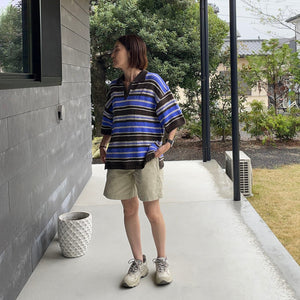 CHISOUsweaterは、マルチボーダーが楽しいオーバーサイズの春夏セーター。ワンサイズ展開です。