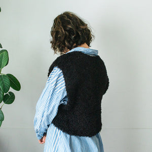amirisuの新しい糸Pop のみで編む、短丈のベスト。