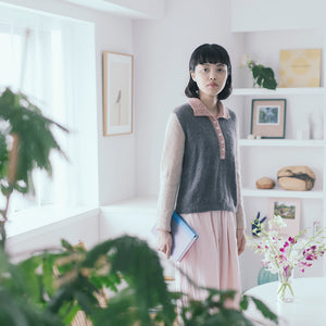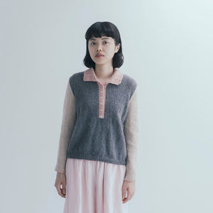 A long-sleeve polo shirt with charming pops of color. Knit in amirisu Flutter, it feels soft even against the