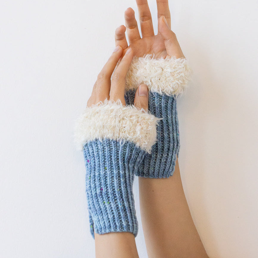 These arm warmers feature fluffy part of Pop on the edges, and you can wear the fluffy edge on either the top or bottom.