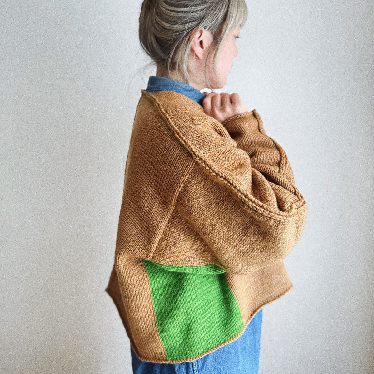 The cute bi-colored V1 cardigan is designed by JURI.