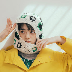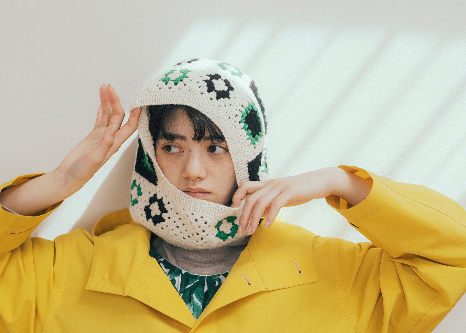 A hood that you can quickly put on when your neck or head gets cold. It's warm because it covers your ears completely. Match it with a collarless coat and let your face peek out cutely.