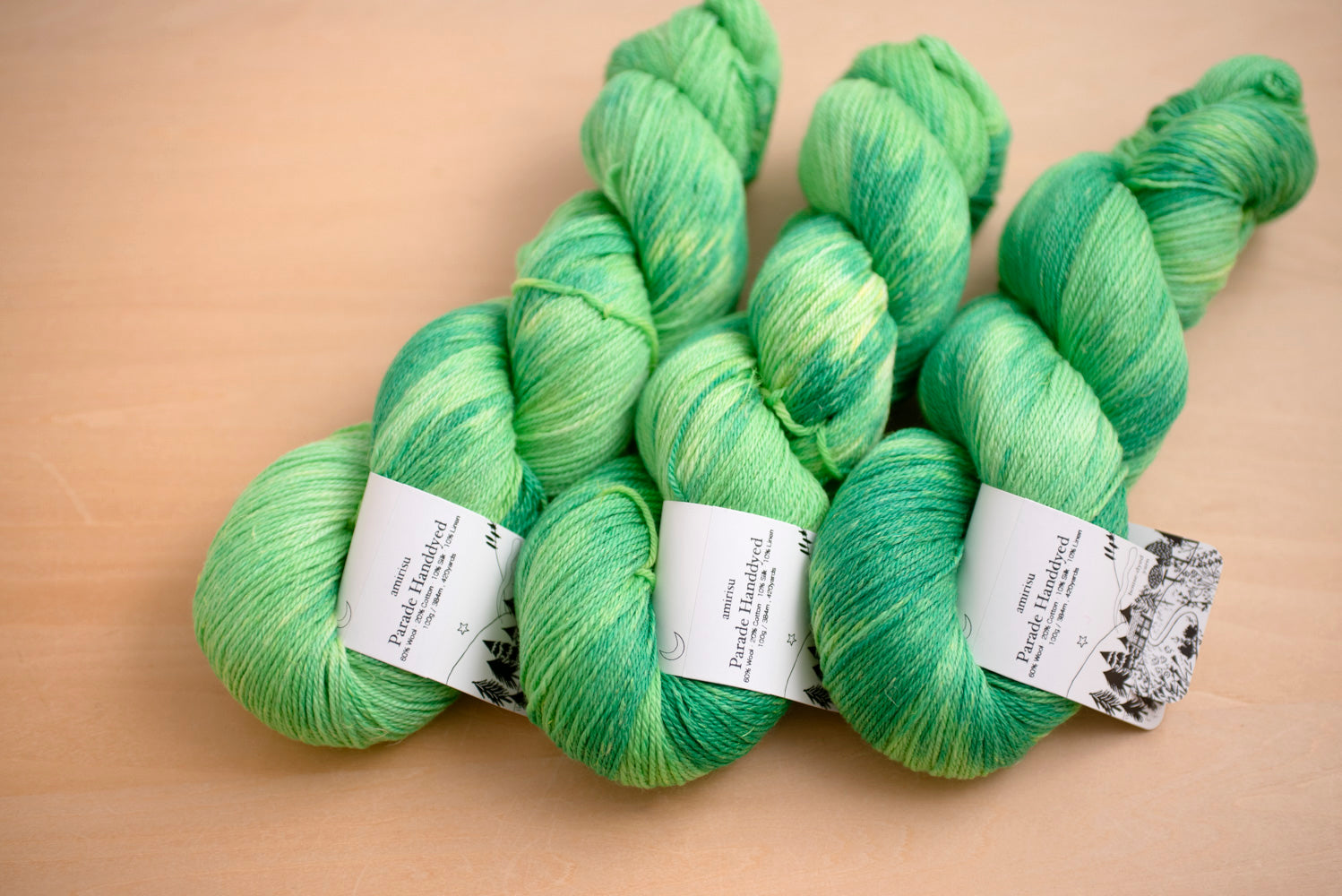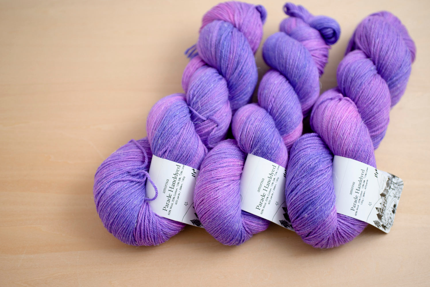 These special hand-dyed skeins of amirisu Parade are dyed in small batches in our Nara studio.
