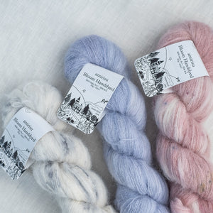 ふわふわのスリアルパカとシルクの混紡で、とても肌あたりが柔らかなレース糸です。