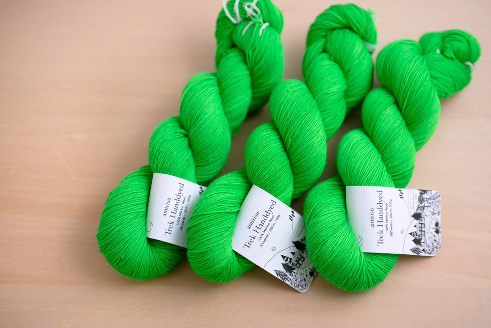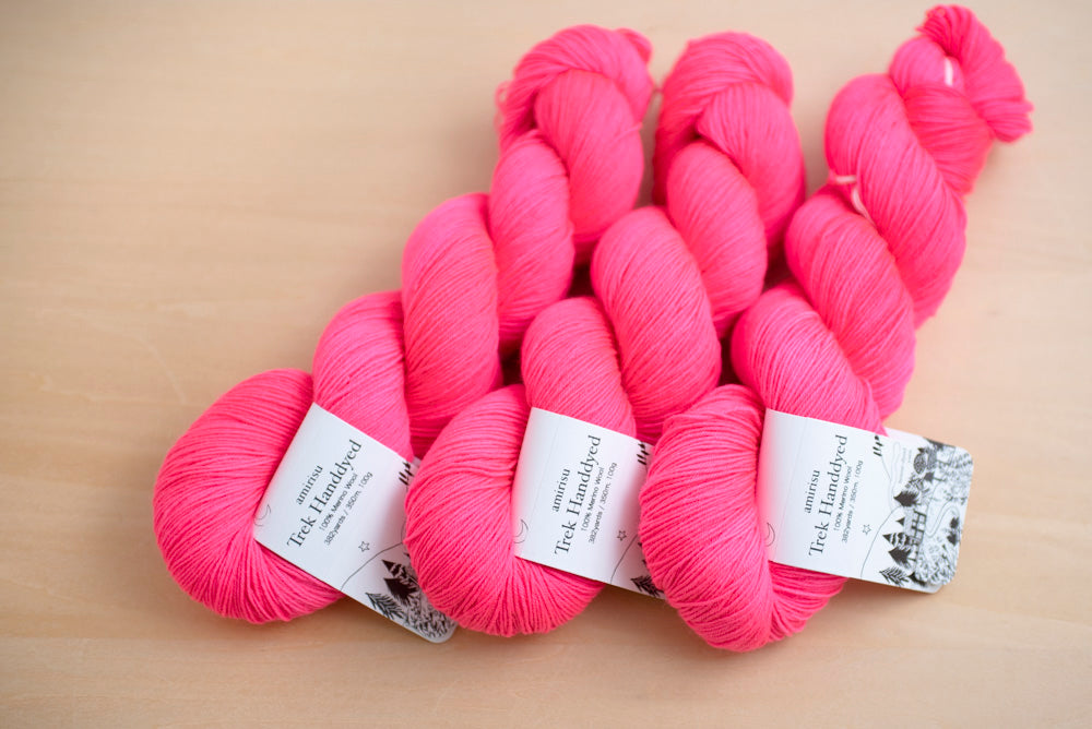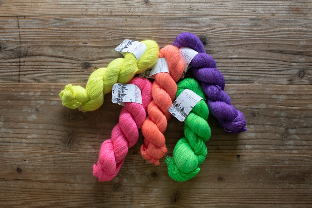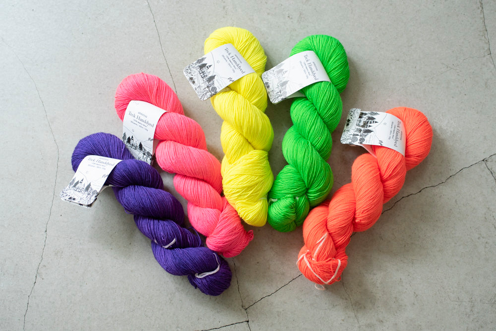 This time, we have dyed our Pop Neon colors on Sock Weight, a high-twist sock yarn.