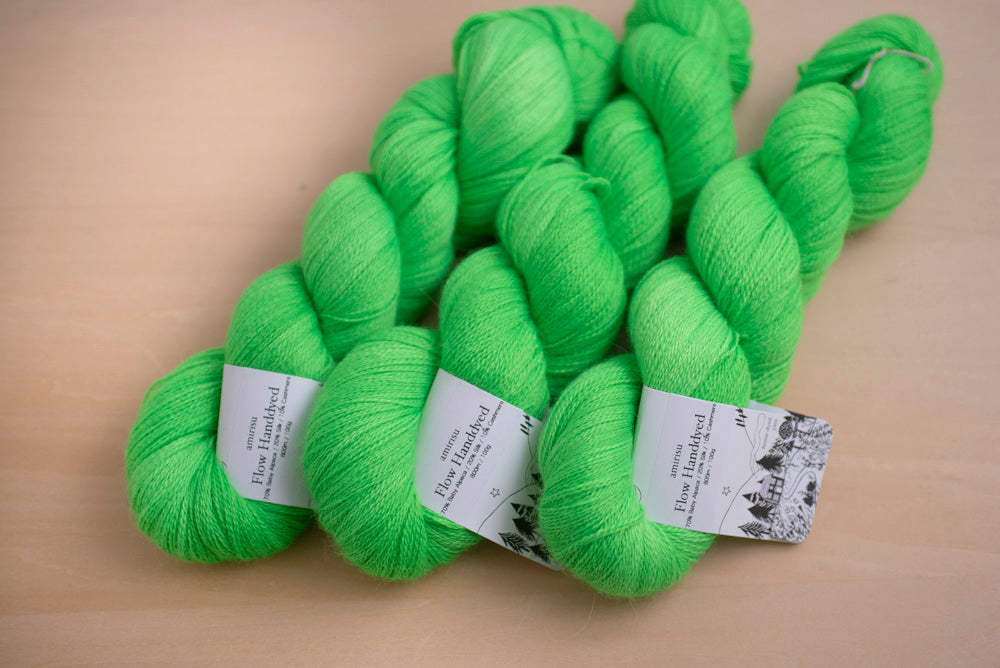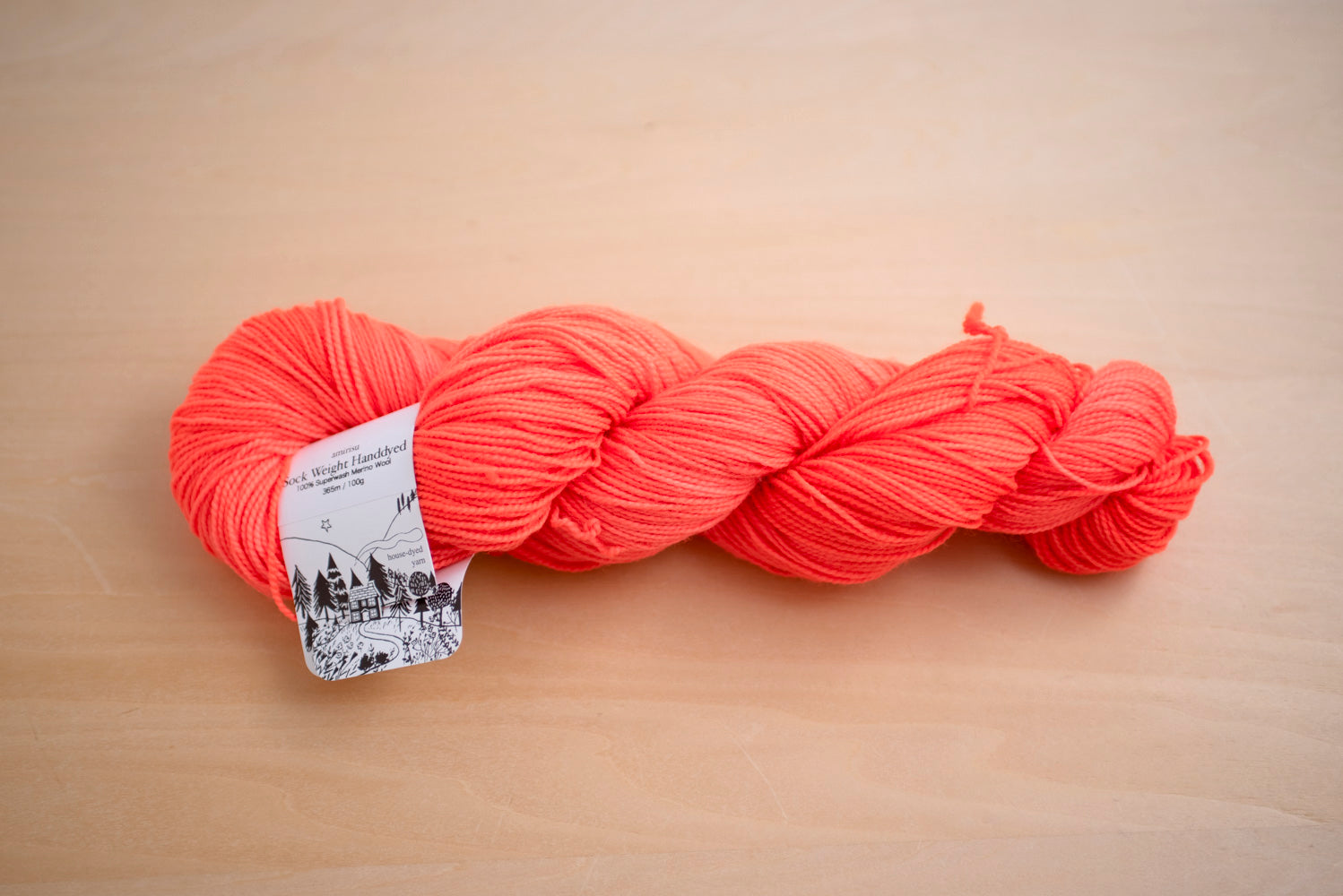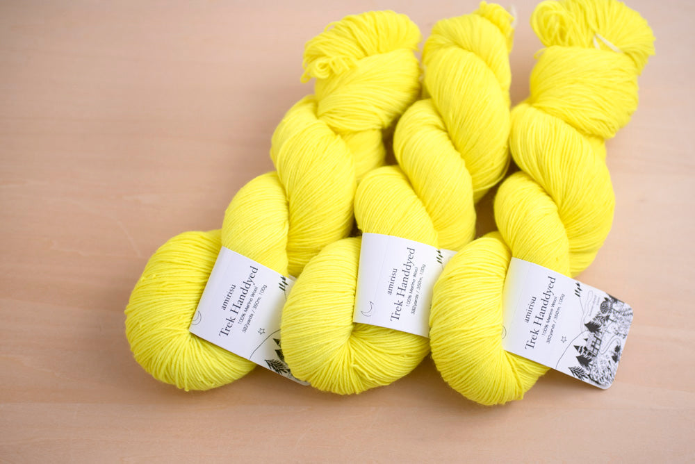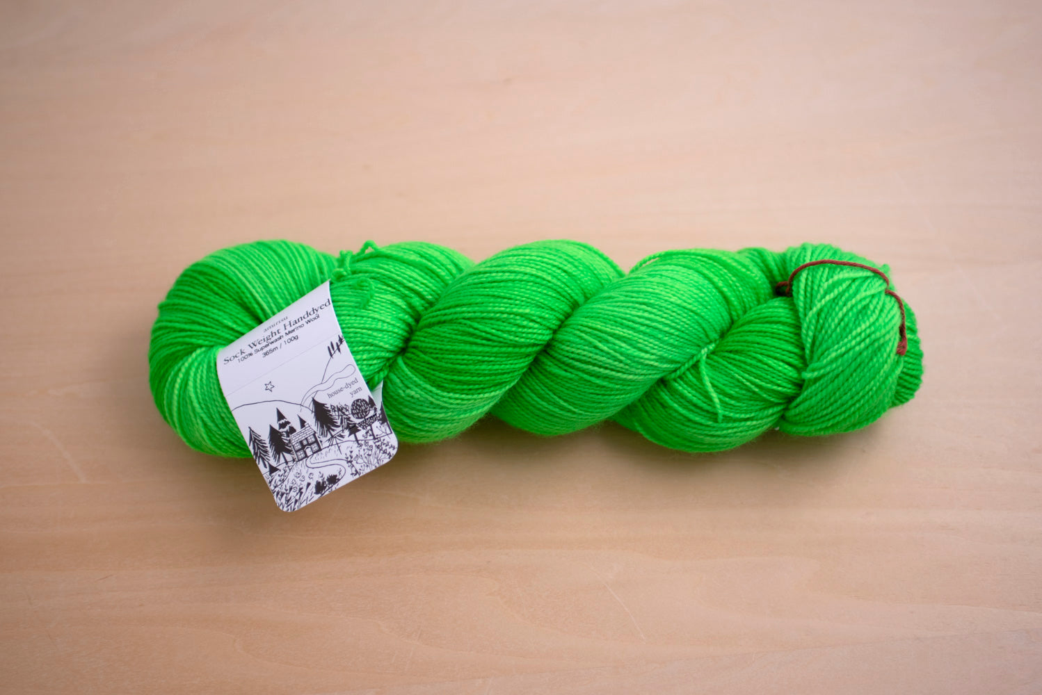 This time, we have dyed our Pop Neon colors on Sock Weight, a high-twist sock yarn.