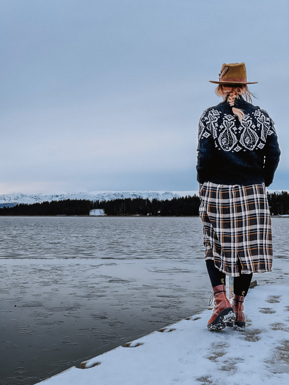 ヨークにぐるりとお魚が並んだ可愛いセーター、Halibut。