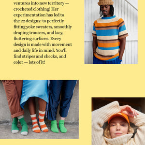 With Hook Out!, the well-loved crochet designer Molla Mills ventures into new territory — crocheted clothing! Her experimentation has led to the 22 designs: to perfectly fitting yoke sweaters, smoothly draping trousers, and lacy, fluttering surfaces.