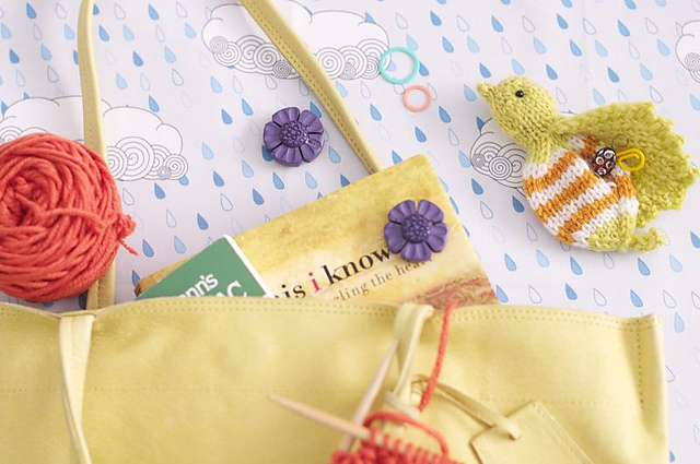 The little bird pouch is so cute. When knitted, stitch markers and small accessories can be put in.