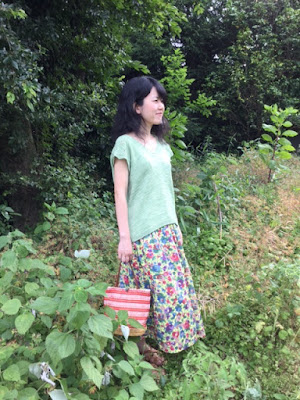 As I mentioned before, it's a refreshing type of wool, so I think I'll be able to wear it until the summer. It was fine even on a summer day like today. The wide neckline, sleeve pattern, and flared hem keep the wind cool.