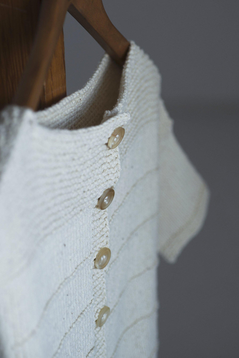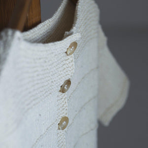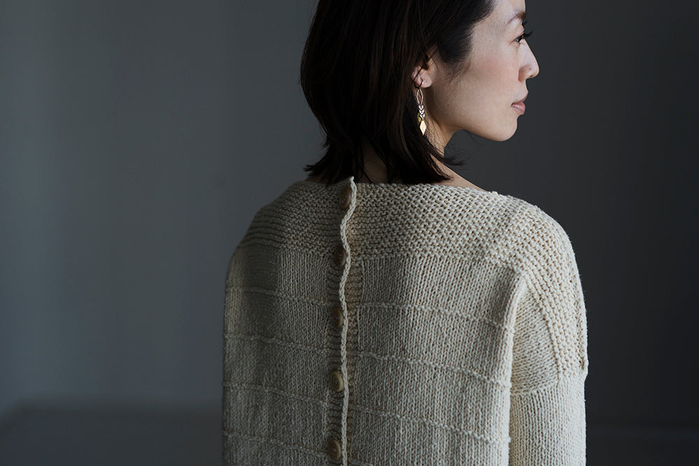 With a boat neck, drop shoulders, and a row of buttons on the back, it's a simple yet full of attention to detail, like vintage clothing that someone knitted with all their heart.