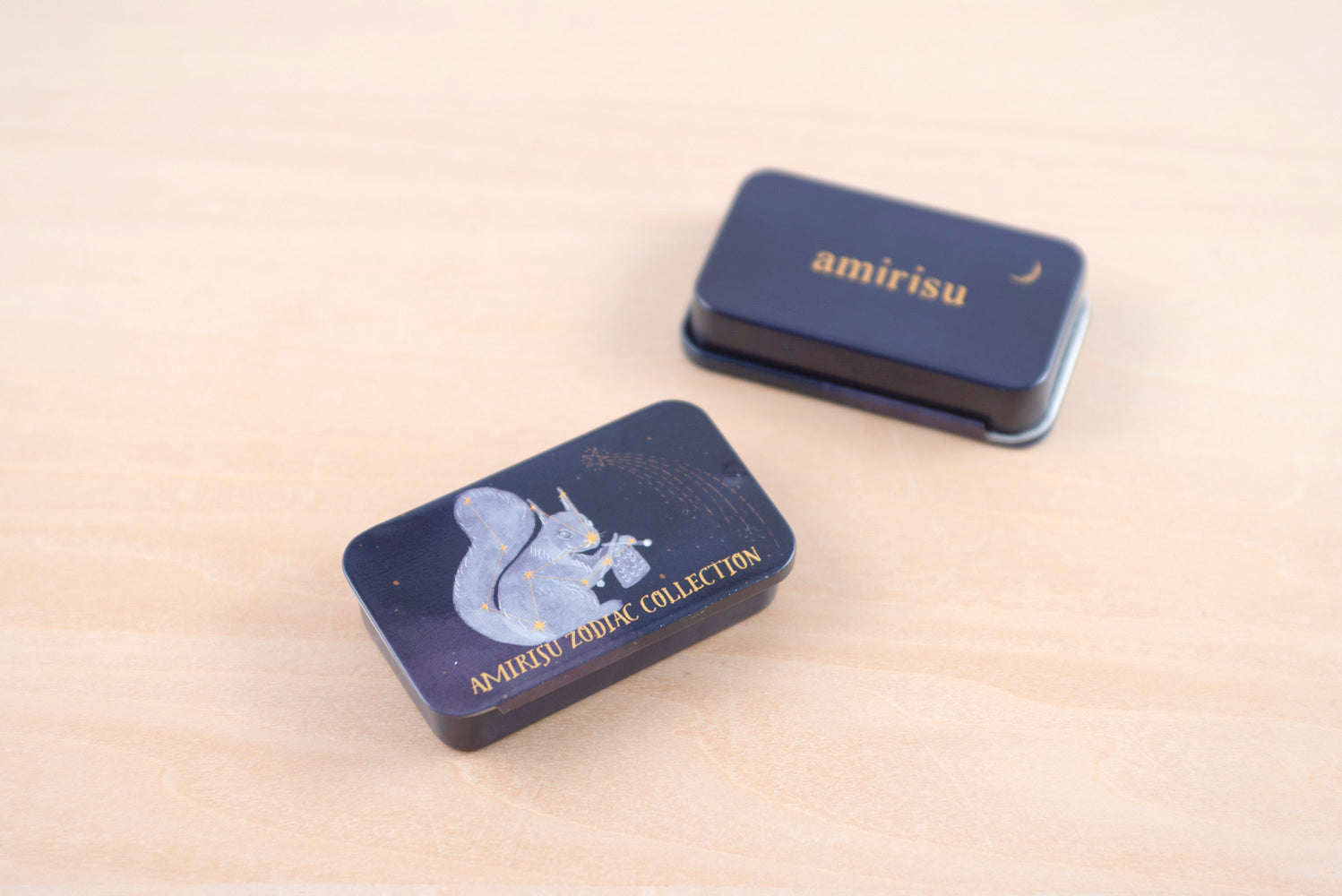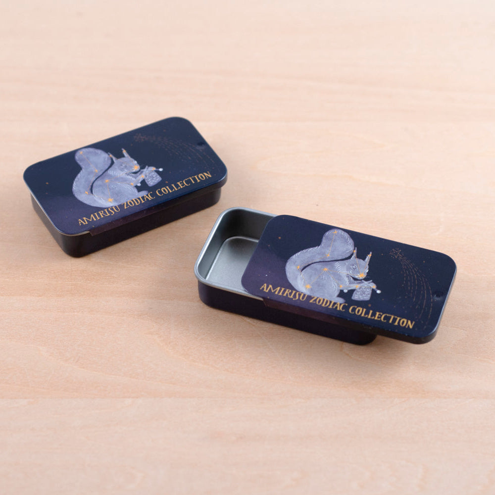 A tin case, with an original illustration of "constellation of Squirrel" by Meri.