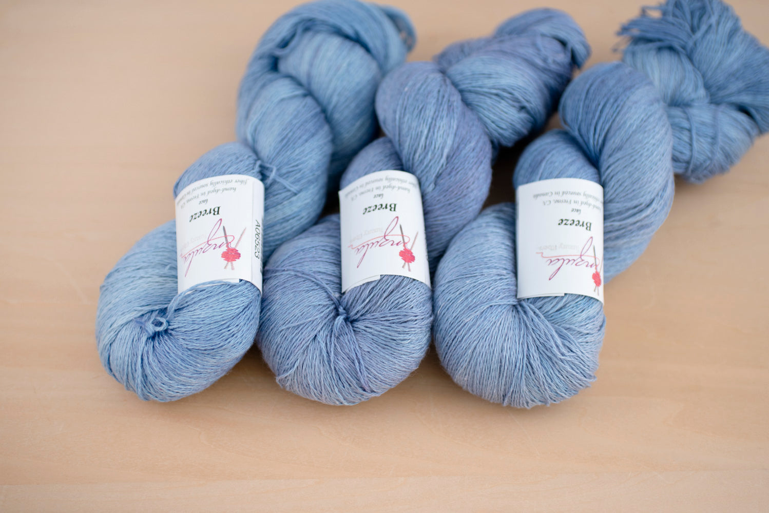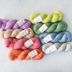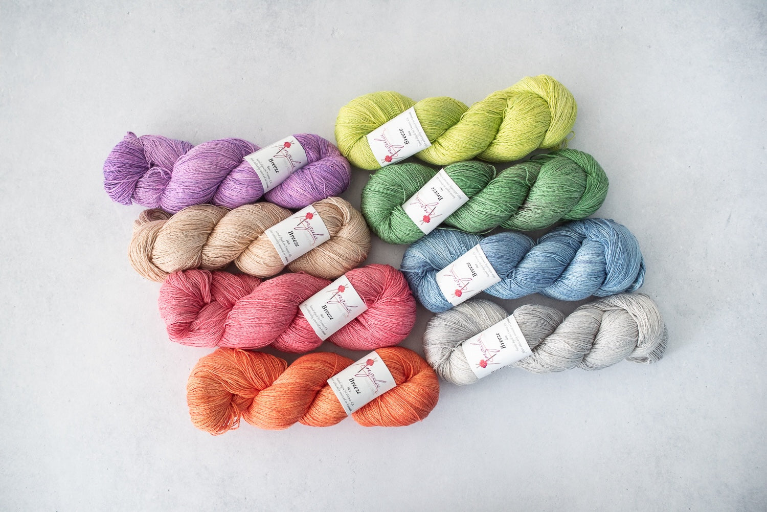 65% Silk, 35% Linen blend, 2-ply Light Fingering Weight Yarn.