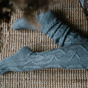 Laine Magazineらしい清楚なスタイリングの美しい写真。スタイリッシュな布張り表紙のハードカバーです。52種類の様々な特徴のパターンが掲載されているので、靴下が編みたい時に開くスタンダードになりそうです。