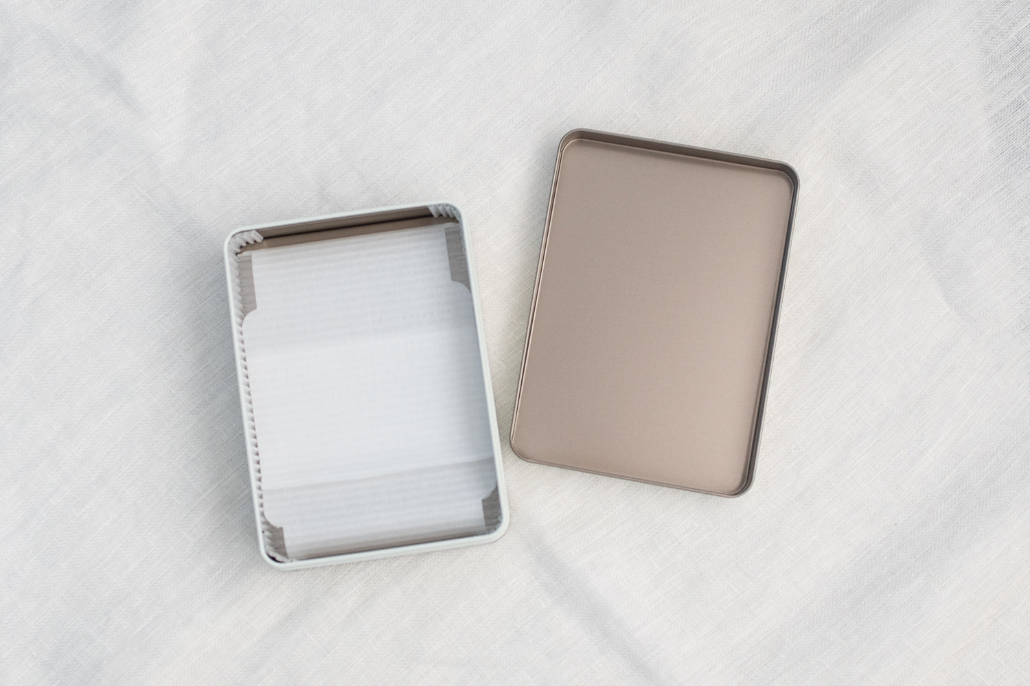 編み物道具やソーインググッズをはじめ、文房具やポストカードの収納にも。好きな物を詰め込んで、お道具箱のように使える便利なサイズです。高さが約4.5cmあるので、小さな毛糸玉や残り糸の収納にも最適。
