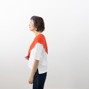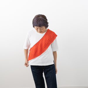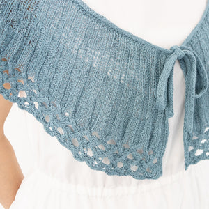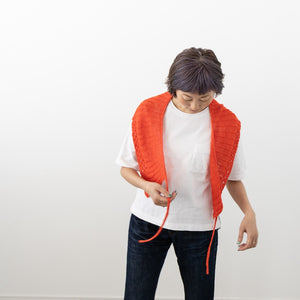 ケーブルで作り出す裾のレース模様がクールです。長さがあるので、ショールの気分で肩にかけたり斜めに巻いたり、シンプルになりがちな夏の装いにオシャレ感をプラスしてくれます。