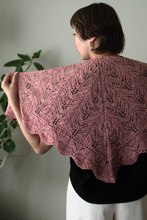 ボトムアップで編みます。大量の作り目をした後、次の段から二目一度の嵐。レースパターンを減らし目をしながら編んでいきます。複雑に見えるレース模様も、意外と編み方はシンプル。Kitmanらしく計算し尽くされた、編むのも楽しい素敵なパターンです。
