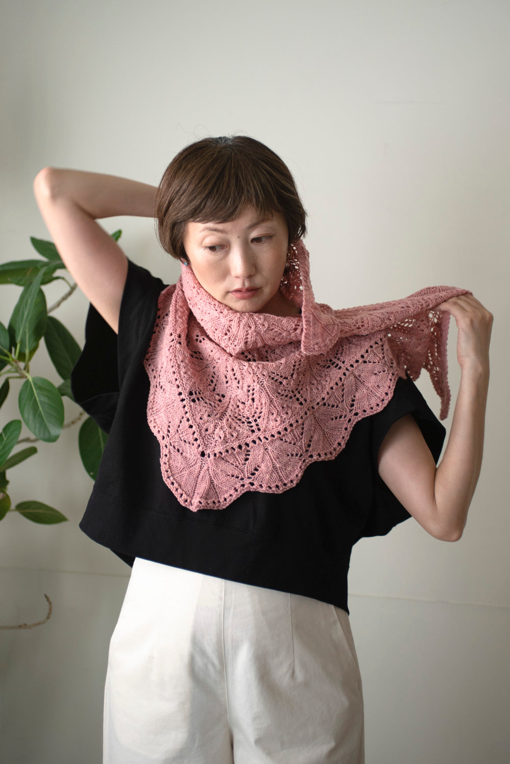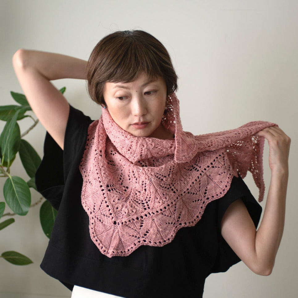 ふかふかの amirisu Swingで編んだら、ちょっとカジュアルな雰囲気になって使いやすいレースショールになりました。糸に弾力と張りがあるので編みやすく、きれいに模様が浮かび上がりました。こんなに編みやすくて素敵に仕上がるなら、今こそSwingでDamaskを編む時です!