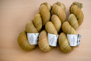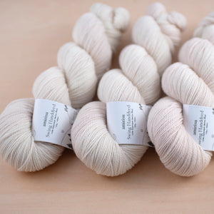 ウールらしい控えめな艶のあるベースに揺らぎのあるカラーが入って、とても奥行きのある糸になりました。お気に入りのカラーでとっておきの作品を編んでくださいね。